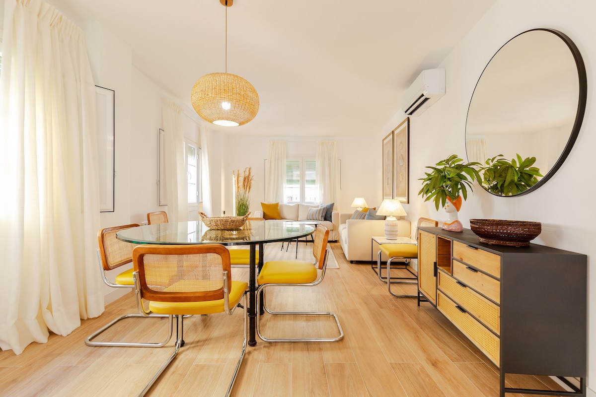 有名なトリアナ地区にある美しいアパートです。最大6名様までご宿泊いただけるため、ご家族連れに最適です。また、無料で屋根付き駐車場をご利用いただけます。とても明るく、静かで、設備が整っています。全室にエアコンが備わっています。Wi-Fi。主要なモニュメントまで徒歩数分。あらゆる種類のレストランやショップに囲まれています。文化、モニュメント、美食、家族、レジャーツーリズムに最適なロケーションです。