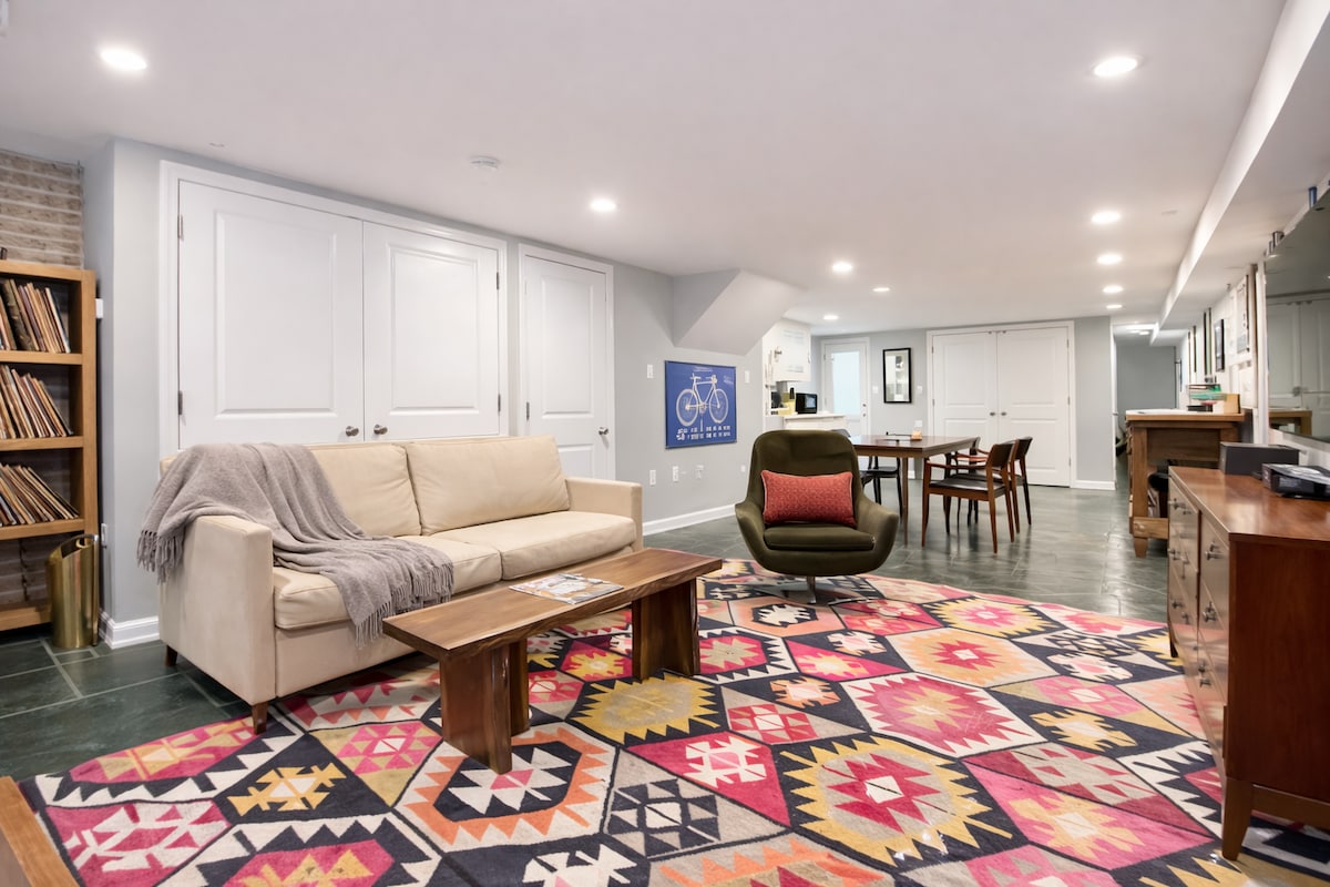 DCの中心部にある明るくユニークな宝石のような地下室!この考え抜かれた改装が施されたプライベートな空間は、本物の窓とガラスのドアを通して前後に太陽光を浴びることができます。専用パティオでモーニングコーヒーをお楽しみください。専用のゲート付き駐車スペース(無料駐車場、通りから離れています!)をご利用いただけますので、簡単に出入りできます。フルキッチンをお楽しみください。ご滞在中に仕事をされますか?高速Wi-Fiをご用意しています。(比較的)閑静な住宅街で地元の人のように暮らしましょう。