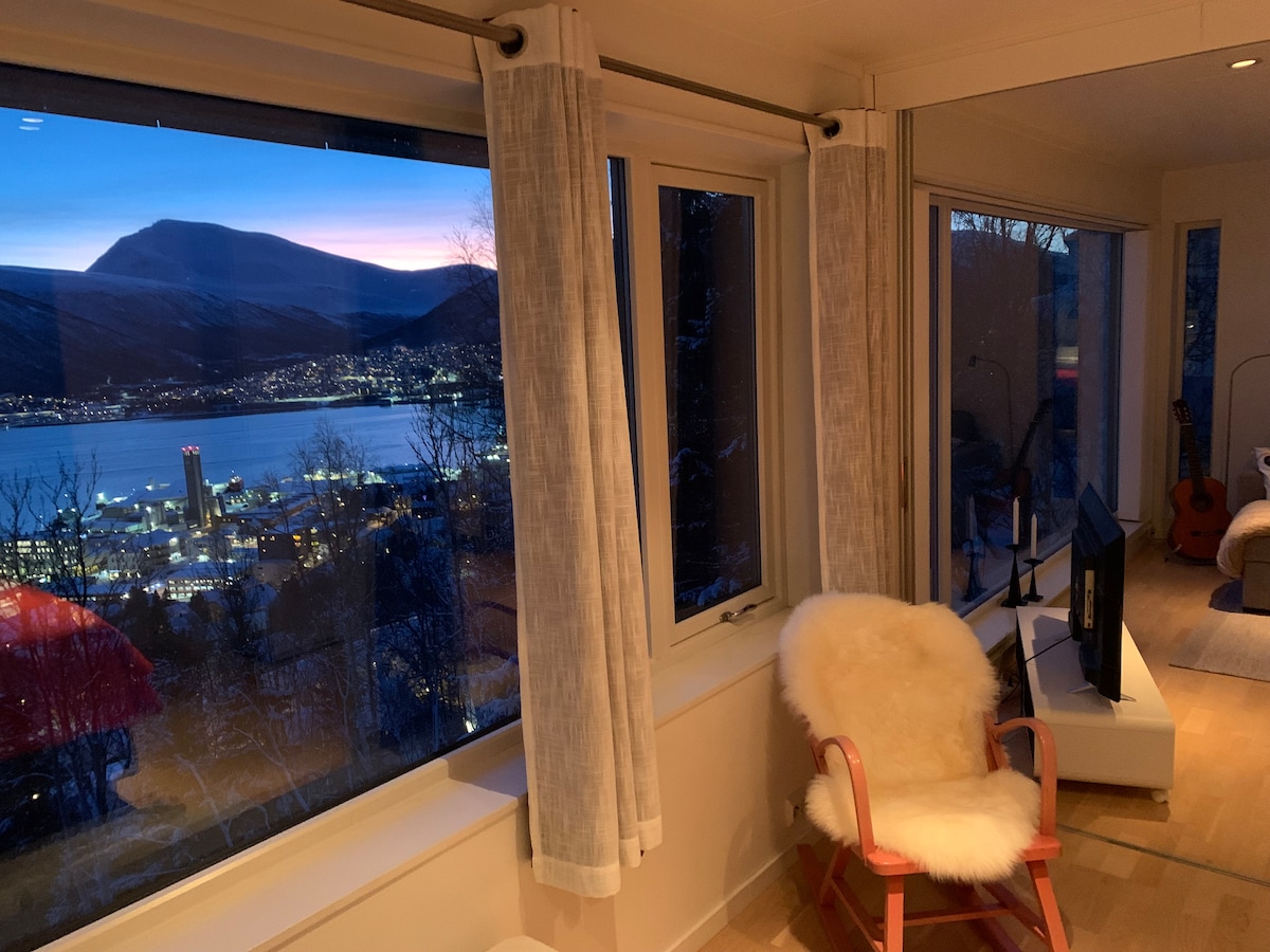 トロムソ中心部の海辺にあるスタイリッシュな最上階のアパートで、北極圏大聖堂、トロムソ橋、ケーブルカー、真夜中の太陽、オーロラの素晴らしい景色を眺めることができます。 ソファコーナーからのHurtigrutaセーリングを楽しんだり、外で波が鳴っているのが聞こえたりしましょう。 入り口は、南に景色を望むガラス張りのテラスの一部です。 中心部まで徒歩10分圏内にあります。 アパートは開放的で魅力的で、時間を過ごすのに素敵で快適な場所です。 賃貸年齢制限:最低25歳。 いかなる種類の喫煙も禁止されています。
