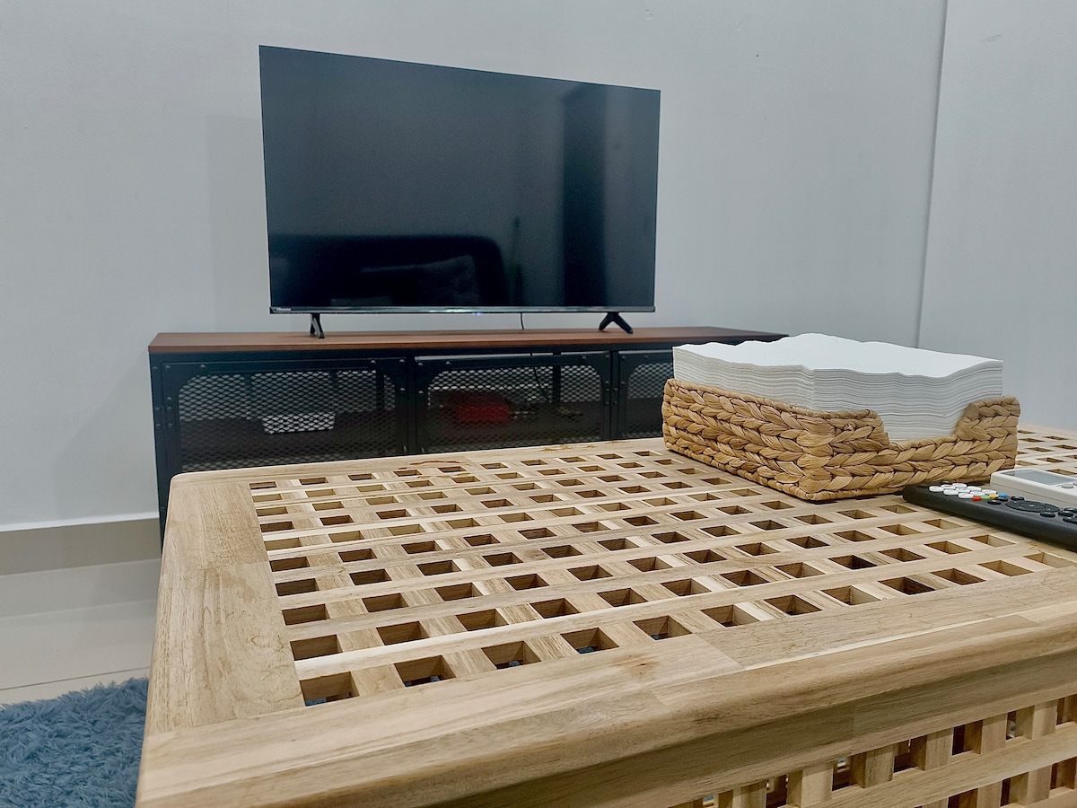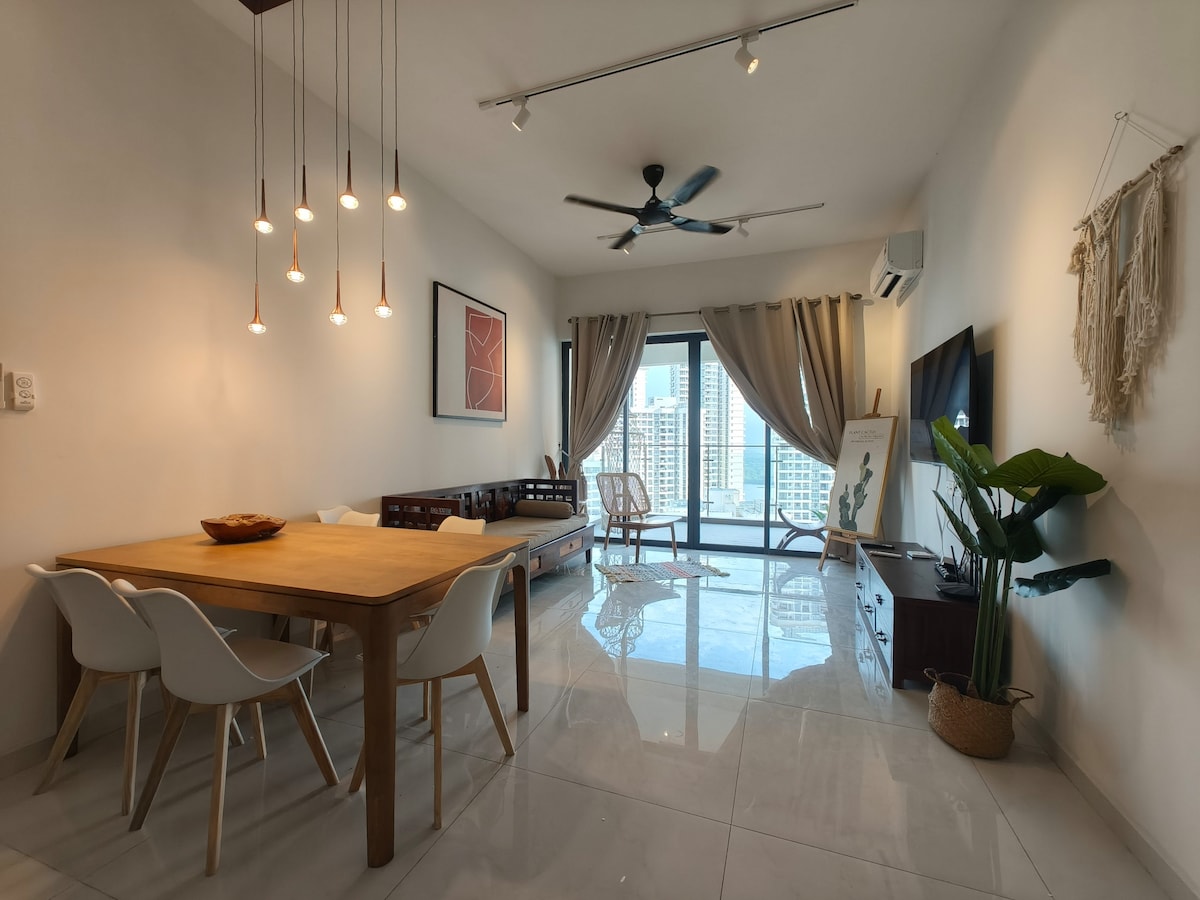 (1+1 BR & 1 bathroom) Contemporary modern and cozy condo in the heart of JB city centre. Suitable for 4pax family, friends and business group. **5mins to CIQ, City Square, KSL, Pelangi, and Larkin **8mins to Mid Valley Southkey, Larkin Sentral and Sentosa **15 mins drive to Paradigm mall, Sutera, Skudai and Mount Austin ✔ 4K SmartTV ✔ High Speed Wi-Fi, working tables with extension plug ✔ Washer ✔ Airconds in every rooms. ✔ Atari console, Mahjong, and Board games. ✔ FREE parking for 1 car
