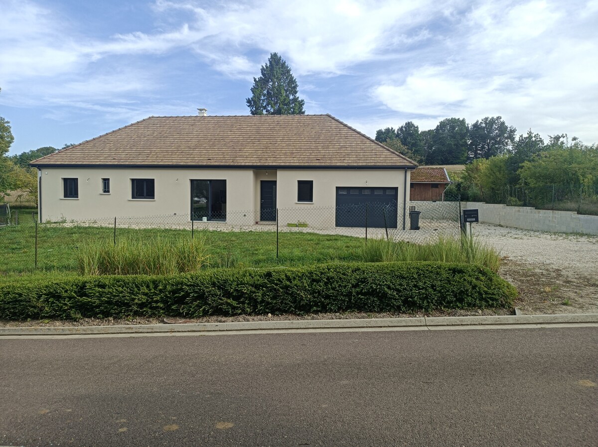 Bonjour, bienvenue dans ma maison neuve chaleureuse, spacieuse et confortable, au calme en pleine nature disposant de 2 terrasses nord et sud entourées de verdure. 2 chambres à louer (1 à 3 pers par chambre). Si vous êtes plus de 4 adultes, possibilité de disposer du canapé lit avec suppl. Le prix indiqué correspond à 1 chambre. Pour profiter de 2 chambres, vous pourrez régler sur Air BNB à votre arrivée au même tarif que la 1ère, ou vous rendre sur la 2ème annonce pour faire une 2ème résa.