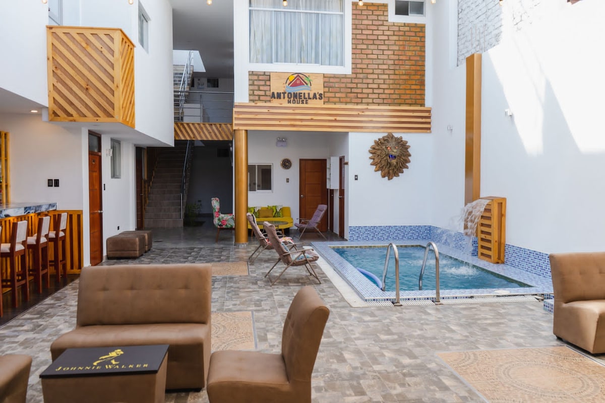 ホスタル・ソル・イ・マール・ワンチャコ(Hostal Sol y Mar Huanchaco)は、静かで快適な海辺の滞在を提供しており、家族での休息と楽しみに最適な場所です。 広々とした空間で、庭、テラス、フリーエリア、プールがあります。プールは水曜日のメンテナンスのため閉鎖されます。 ゲストの皆様に最高のおもてなしを提供し、できる限りのサポートをさせていただきます。埠頭から67メートルの場所にあります。