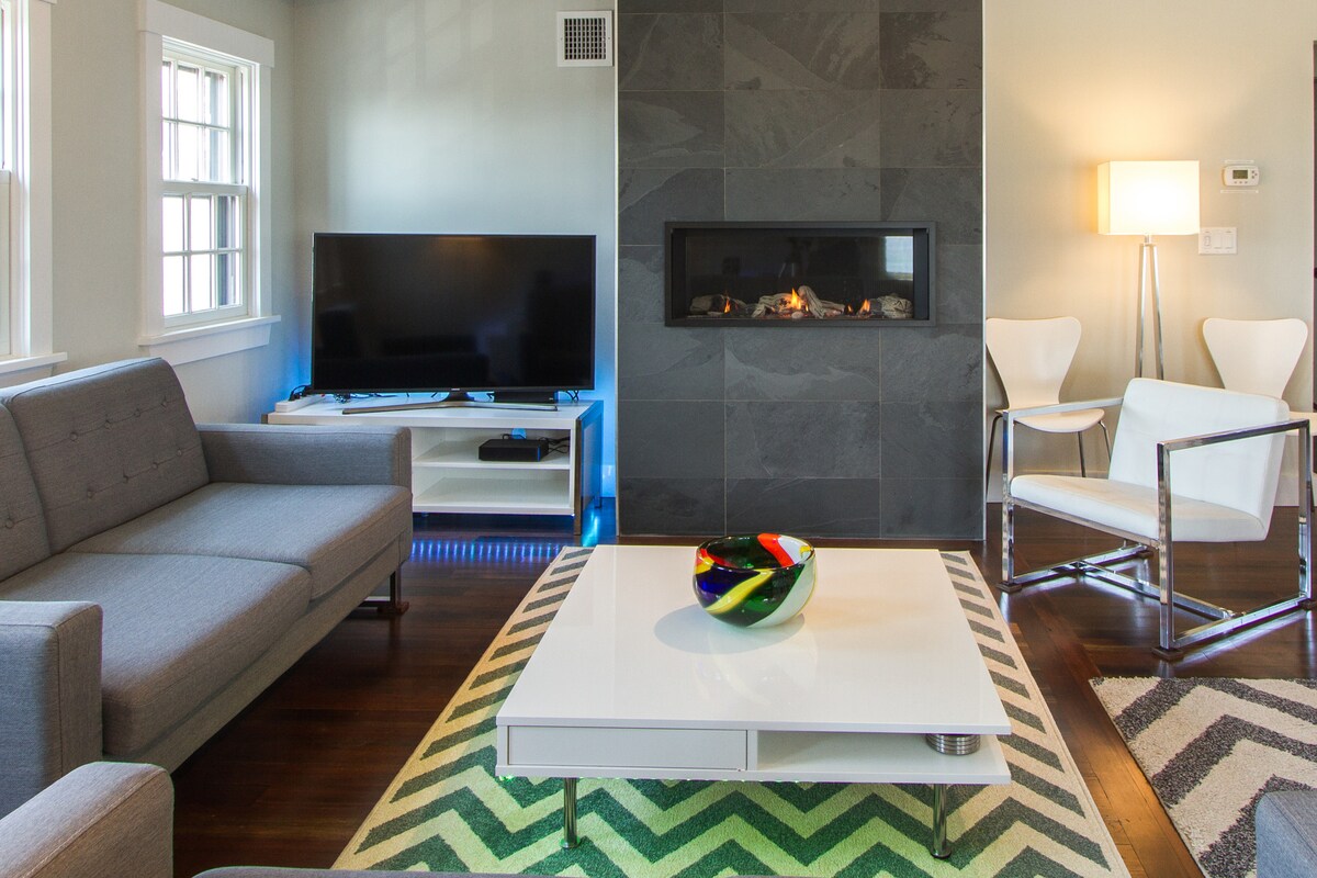 Pristine 2 bedroom condo with open kitchen/living area, indoor fireplace, central A/C, private outdoor patio with grill & washer/dryer. Nestled in PRIME location on Arch St. between Commercial & Bradford St. Includes 1 parking spot* for the guest right on the premises! Condo has been newly renovated - new kitchen, paint & furniture! *The assigned parking spot will fit any small to mid-sized vehicle. If you have a large vehicle that is long in length (for example a pick up truck), it may not fit.