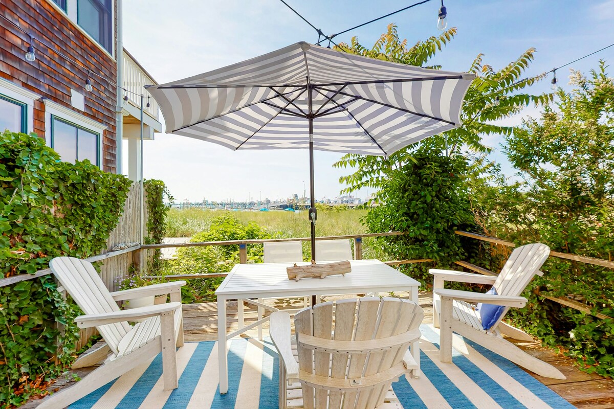 Waterfront condo association in the center of Provincetown, close to everything! This studio is located in Angels Landing and has everything you need for your stay in Provincetown. Steps from the beach, shopping, coffee shops, restaurants and galleries. The studio offers large waterfront decks with chairs for lounging and an outdoor shower to complete your beach front vacation! Parking is not included, but you can find parking info on the towns website.