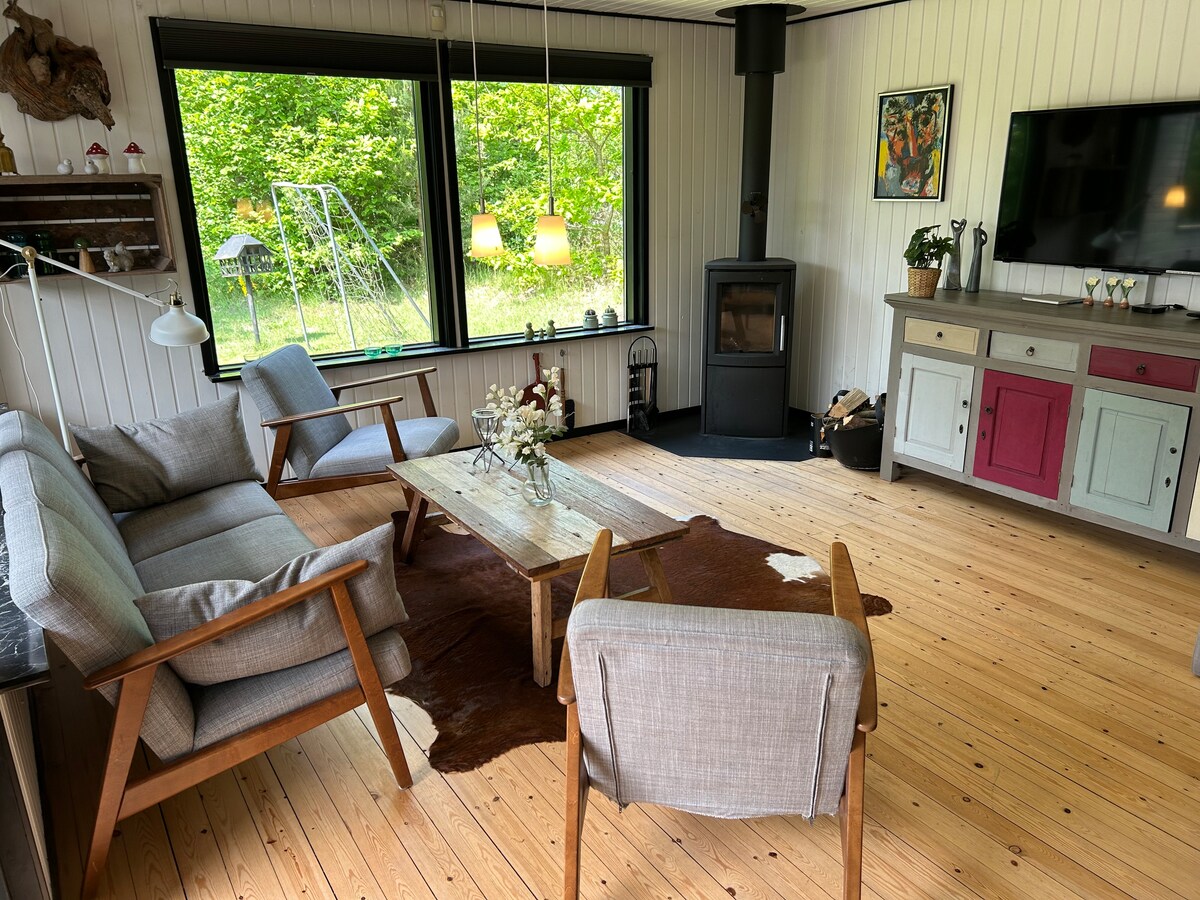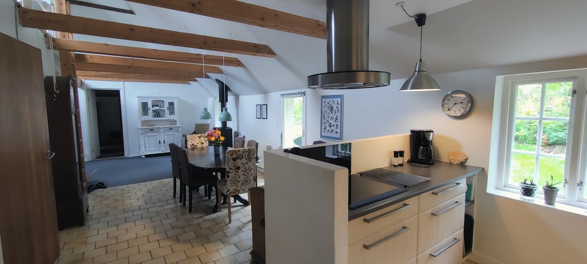 ジュールスランドの観光スポットに近い、自然豊かな環境で静かな時間をお楽しみください。 森と自然に囲まれた長い砂利道の端に私たちのゲストハウスがあります。ジュールサマーランド、カッテガトセンター、リー・パークを探索したり、ビーチで散歩したりする場合でも、近くにあります。家には、キッチン、赤ちゃんのための設備、子供向けの遊具が完備されています。ランドスとオーフスへは車で1時間未満で、都市生活へのアクセスも簡単です。田舎で皆様をお迎えできるのを楽しみにしています!