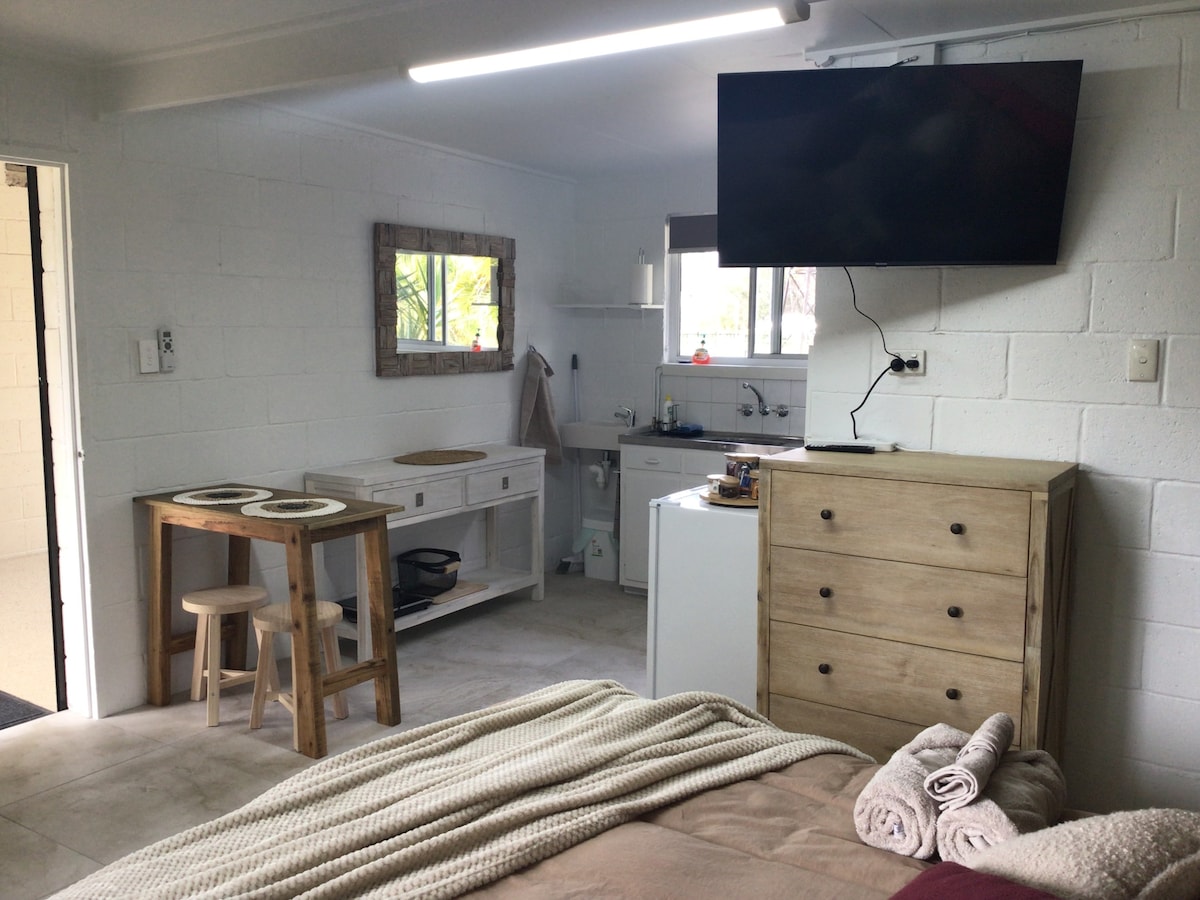 熱帯の庭園に囲まれたモダンでスタイリッシュなゲストハウスで、プライベートで隠れ家的な空間です。 この家にはエアコンがあり、暖炉もあります。 ベッドシーツとタオルは用意されています。 高速NBN無線インターネット。 このゲストハウスは、有名な「バンブーランド・ナーセリー&パークランズ」と同じ敷地内にあります。 この宿泊施設は、水泳やカヌーに最適な淡水のバラム川沿いにあります。カヌーをご利用いただけます。
