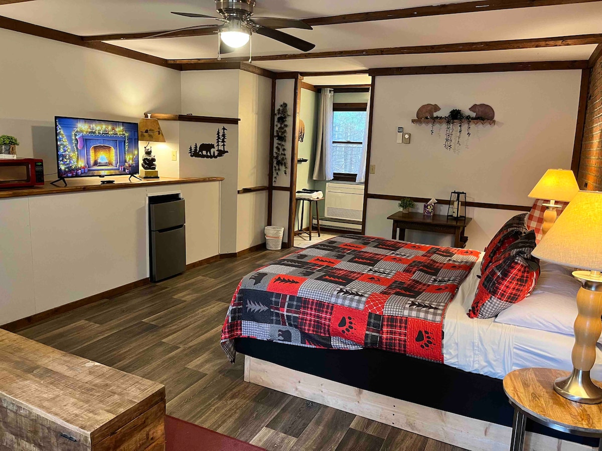 ようこそ。私たちはThe Sleeping Bear Retreatです。ジム・ソープの中心部から6分の場所にある、美しい7エーカーにわたる木々に覆われた山頂の物件です。 私たちの物件には、素朴な森の中に、ユニークで個別にテーマが決められたロッジルームがいくつかあります。 ムースは、母屋から離れた専用玄関を備えた快適でプライベートな1ベッドルーム/1バスルームのロッジルームです。 さらに、この特別なロッジルームには、景色の変化を求めているリモートワーカーのためのワークスペースがあります!