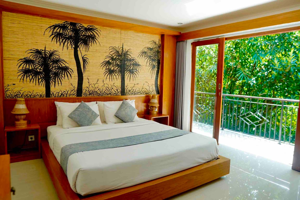 ウブド中心部にあるバルコニー付きの広々としたスタジオ(グリーンビュー)