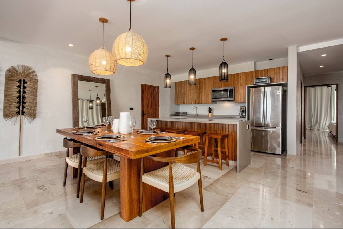 Small Luxury Hotels of the WorldのメンバーであるBespokeのこのエレガントな2ベッドルームのアパートは、砂浜へのプライベートアクセスと、トゥルムでの静かで贅沢な休暇を提供します。 モダンなキッチン、広々としたリビングルーム、フルバスルーム2室、全室エアコン完備、大きな窓から自然光が差し込みます。 Wi-Fi、テレビ、ランドリー設備でリラックスしたり、ビーチに足を踏み入れたり、トゥルムの活気あるレストラン、文化、ナイトライフを数分で楽しめます。