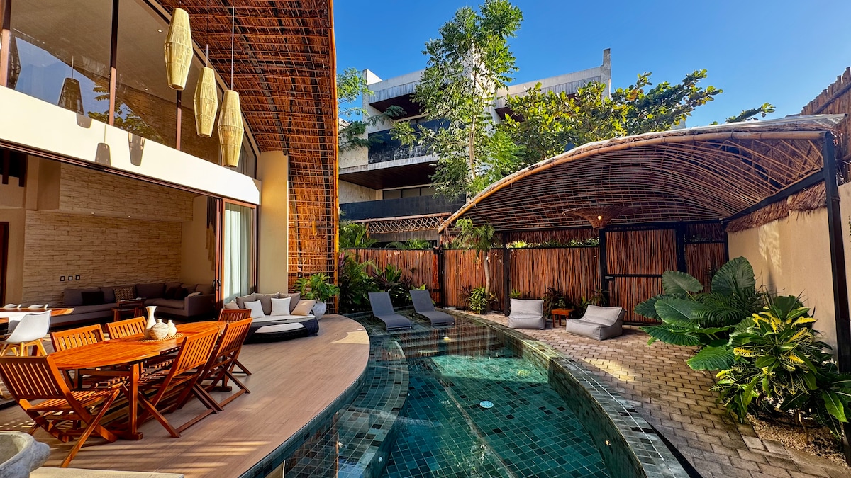 プール付きの豪華なボーホービラ | トゥルムビーチまで5分