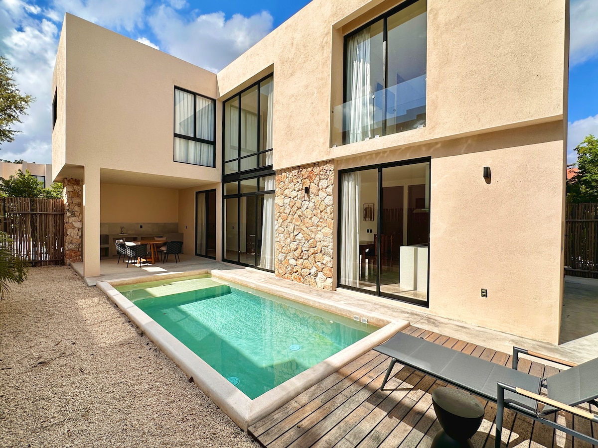 Mexication Tulumへようこそ!3階建ての1ベッドルームペントハウスで贅沢なひとときをお過ごしください。広々としたバルコニーでコーヒーを楽しみ、65インチのOLEDテレビと高速インターネットを備えたリビングルームでくつろぎましょう。中二階のベッドルームにはキングサイズのベッドとレインシャワーが備わっています。バスタブ、バーベキューグリル、快適な座席を備えた専用屋上で一夜を終えましょう。トゥルムの町とビーチの間にあり、活気あるフードスポットから徒歩ですぐで、ビーチまで自転車で行けます。トゥルムの見どころを体験しましょう!
