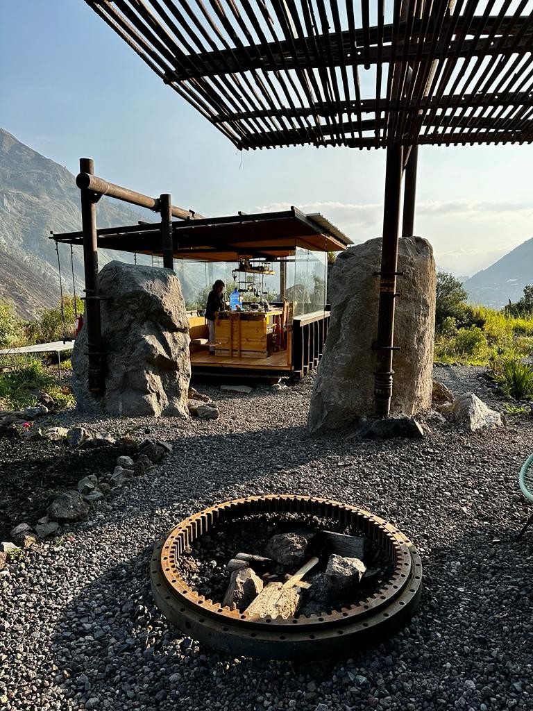 トゥングラウア火山のふもとにあるキャビンで、バニョスのダウンタウンから4kmの場所にあります。この宿泊施設は、アンデス山脈とパスタサ川峡谷の素晴らしい景観に囲まれています。 60%がリサイクル素材で建てられ、有機的な要素と再生可能エネルギーを組み合わせたこのキャビンは、アンデス山脈での新しいホスティング方法に焦点を当てた革新的な体験を提供します。建築の実践は、国際的なビエンナーレで認められています。