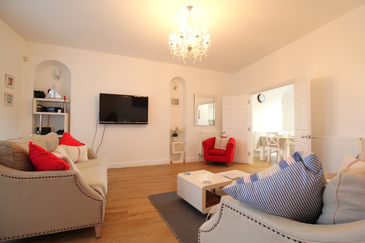 素晴らしい海岸線の景色を楽しめる最高の海辺のロケーションにある魅力的でモダンなアパートで、駐車場付きです。 歴史的な港や町の中心部まで徒歩ですぐです。 町の幅広いレストラン、パブ、ショップ、ランドマークシアターまで徒歩圏内です。 広々としたスタイリッシュなオープンプランのリビングルームには、壮大な海の景色を望むバルコニー、モダンなキッチン、港の景色を望む専用バルコニー付きの素敵なダブルベッドルームがあります。