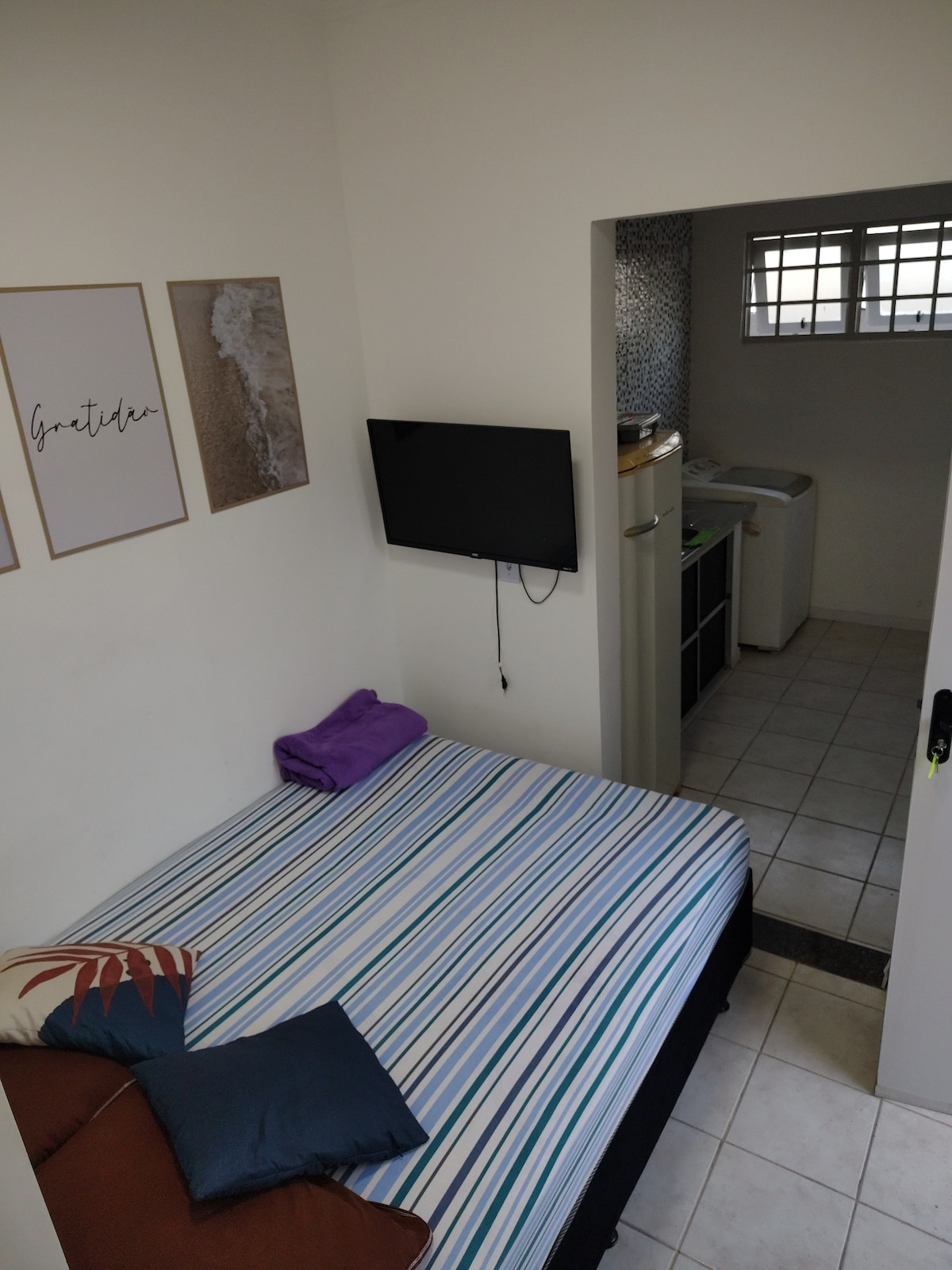 ダブルベッドとエアコン付きキットネット、中心部にあり、設備が充実!