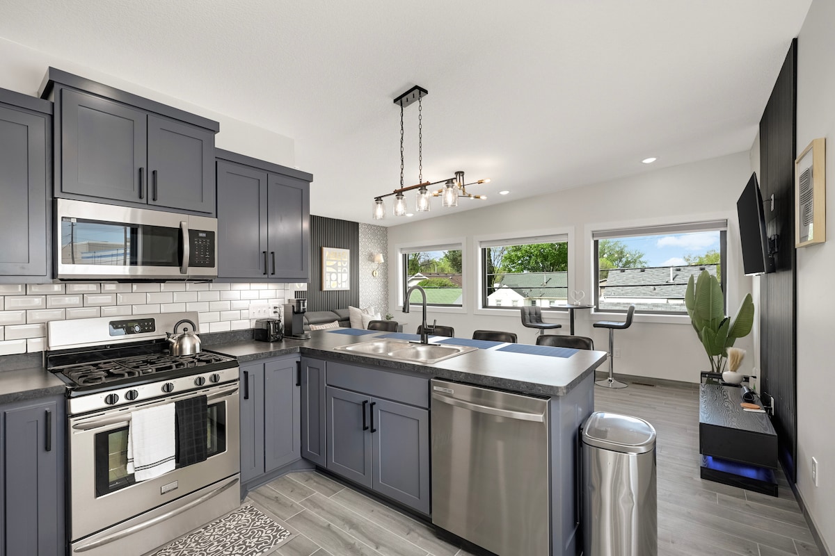 **春にジャグジーが登場** ☞サウナ ☞ フェンス付きの裏庭 ☞ 焚き火台 ☞ 駐車場(敷地内、5台) ☞ 150 MbpsのWi-Fi ☞ Netflixを備えた4Kスマートテレビ5台(最大70インチ) ☞ペット同伴可 ✭「またこの地域に来ることがあれば、必ず再予約します!」 ☞ バーベキュー(炭/木材、炭/木材をご用意) ☞設備・器具のそろったキッチン ☞ セルフチェックイン ☞ 敷地内に洗濯機と乾燥機 ☞ エアコン ☞暖炉 》ミネアポリス北東アーツ地区まで5分 》ダウンタウンまで10分 》空港まで20分 》モール・オブ・アメリカまで30分