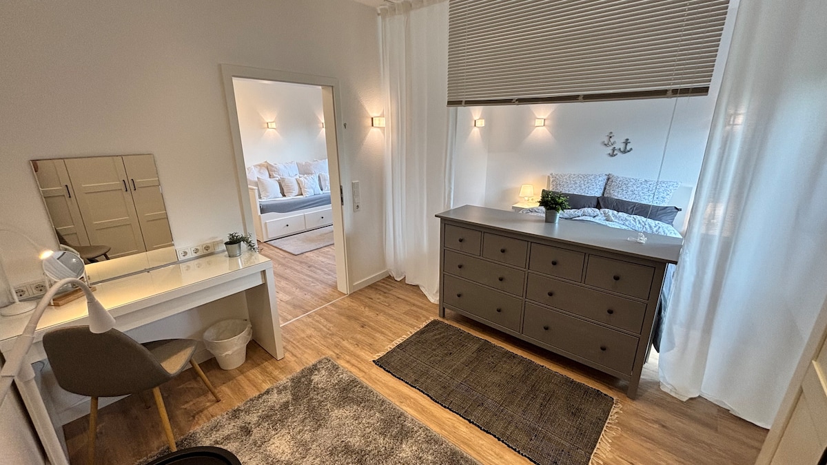 Die im Erdgeschoss liegende Ferienwohnung ist modern und stilvoll eingerichtet - ideal für Paare oder Einzelpersonen. Die Wohnung wurde im April 2019 komplett neu erstellt und eingerichtet. Der Wohnraum: Neben einem Schlafzimmern, einem geräumigen Wohnzimmer mit kompletter , moderner Küche und einem weiteren Schlafsofa für 1 Person (1,40 x 2,00 m) verfügt die Wohnung über eine modern ausgestattete Küche und ein Badezimmer mit Dusche. Die Wohnung ist eine Nichtraucherwohnung.