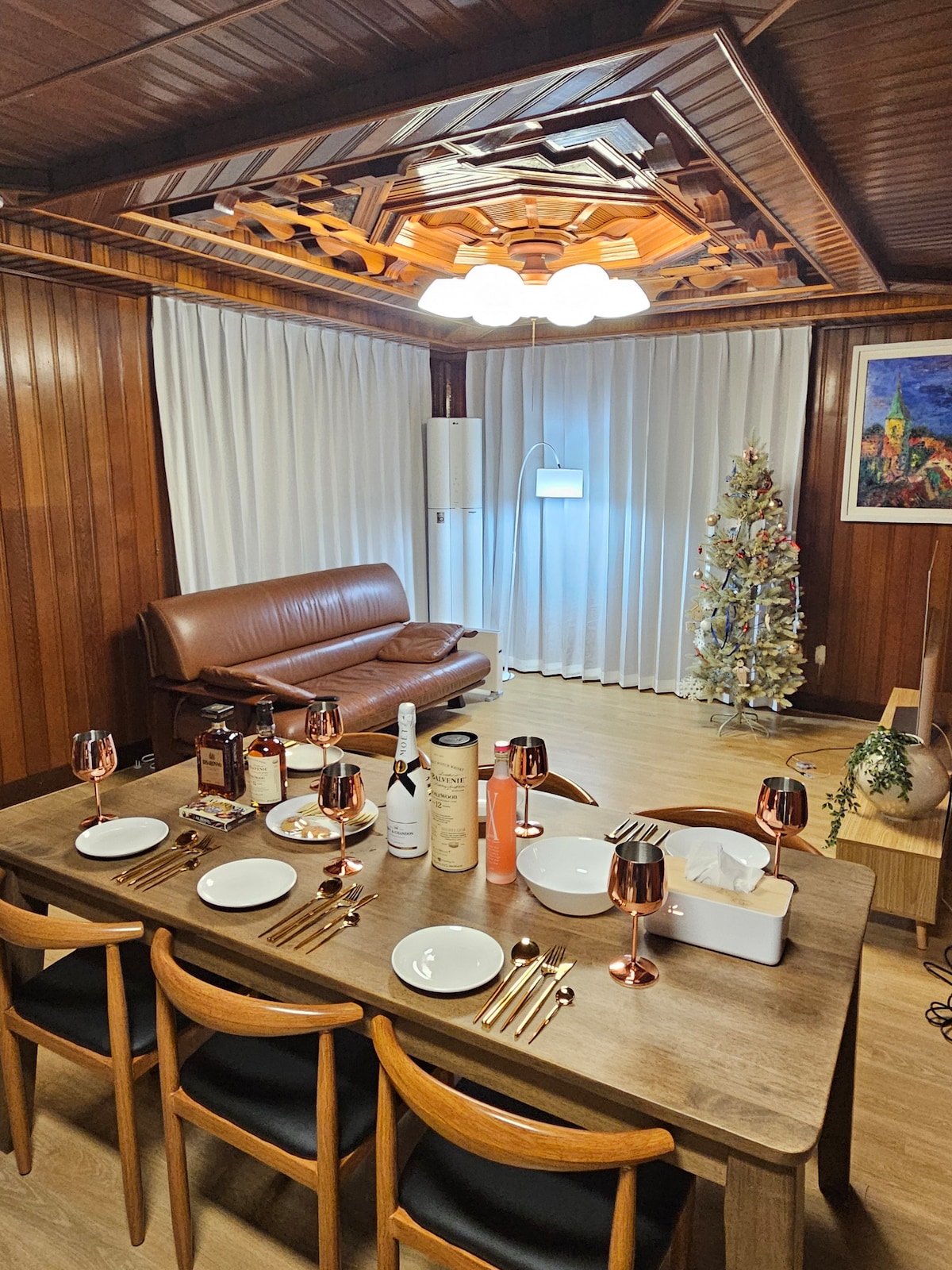 1、2階全体、2〜8名様用、寝室2室(クイーンサイズベッド2台)、広いリビング2室(クイーンサイズソファベッド2台)、トイレ2室、キッチン1室(調理器具完備)、12人掛け大型ウォルナット材テーブル(4m)、ボードゲーム、Nintendo Switchゲーム機 キッチン-電気炊飯器、電子レンジ、インダクション、冷水器、コーヒーマシン(エスプレッソマシン)、調理器具と調味料、食器、ワイングラス、冷蔵庫完備 ソウルの中心街で宮殿を背景に宿泊できる最も美しい宿泊施設です。未公開のチャンドック宮の裏庭の秘密の庭園を見渡して癒しを楽しむことができ、地下鉄駅や公共交通機関にも近いので、旅行の利便性も十分です。管理人は10分先に住んでいるので、必要に応じていつでも対応可能です。 **専用駐車スペースはありませんが、公営駐車場は徒歩5分の距離にあります。