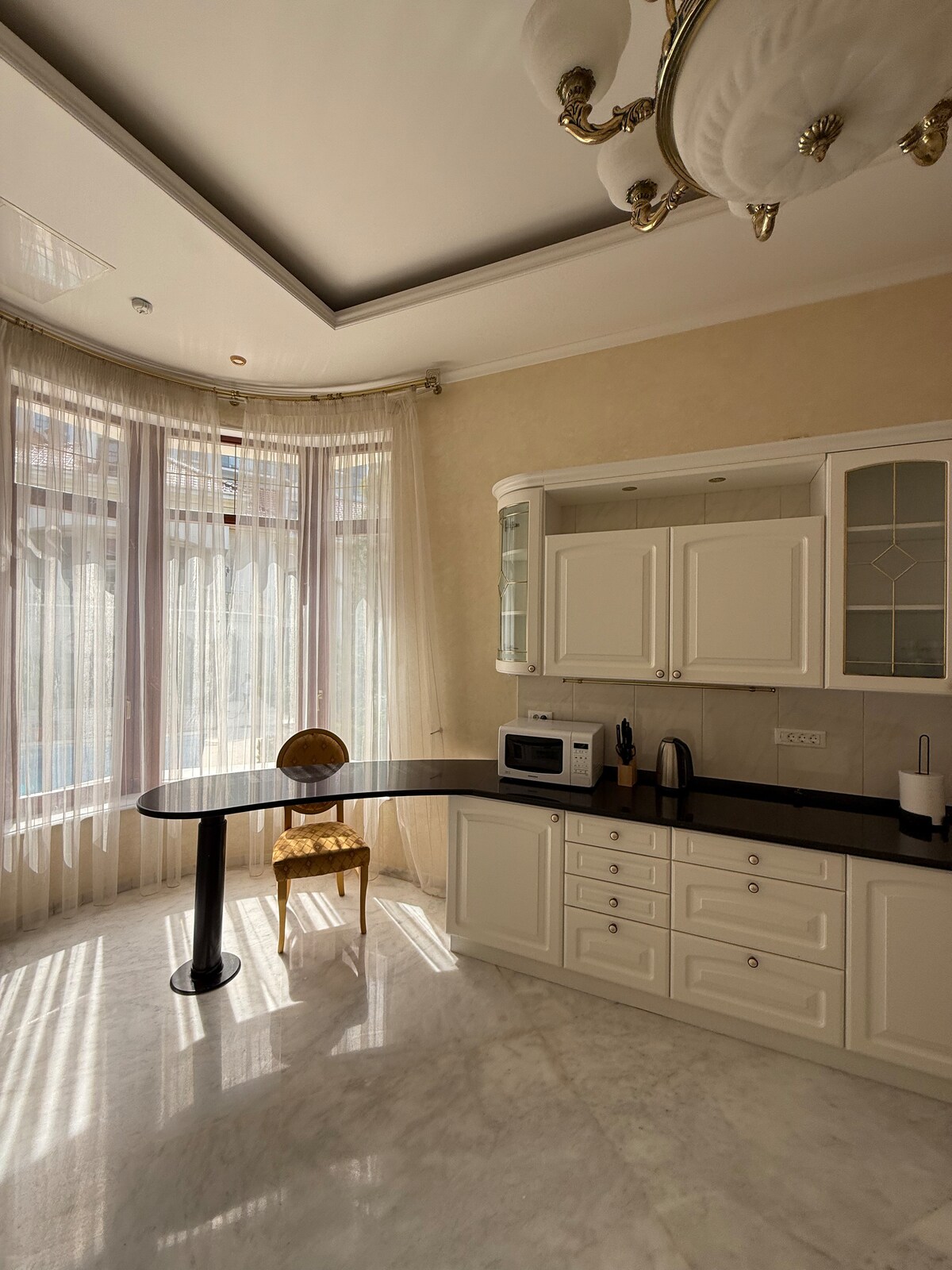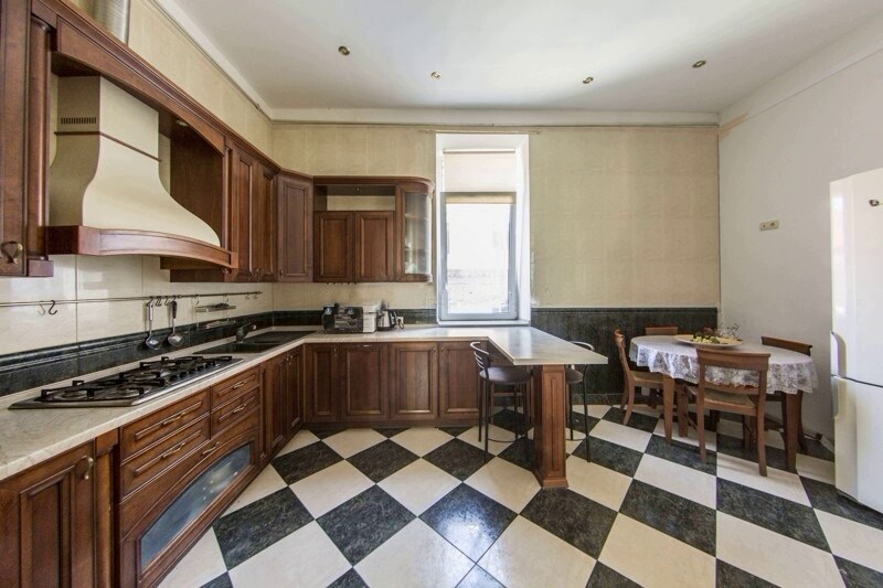 Large 6 bedrooms apartment situated on 6th and 7th floors. All 6 bedrooms and two living rooms with AC, total 8. Well cooling in Summer and perfectly warming up all flat in Winter. There are 4 toilets, two shower cabins, one big Jacuzzi for two people. Wi Fi is free. Lift in the building.
