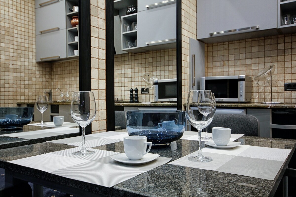 A cozy apart-hotel that has 4 separate studios in the loft style. The apartments are located on the 2nd floor and they are designed for 10 people. The building is located in the center of Kyiv near the shopping center "Gulliver", not far from the Olympic Stadium and Khreshchatyk Street, a 5-minute walk from the âPalace of Sportsâ metro station. The apartment has a king-size bed and, if it is necessary, an additional fold-out bed. Each studio has a small kitchen, bathroom and everything you need.