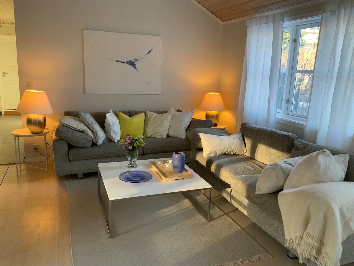 Ullernの素敵なタウンハウスで、路面電車、バス、電車( Skøyen/Lysaker )などの公共交通機関にすぐ近くにあります。 宿泊施設は、保護された庭園と良好な日当たりの良い静かな通りにあります。 お部屋には以下が含まれます。 1階:廊下、キッチン付きリビング、トイレ。 2階: 2つの寝室( 1つはダブルベッドの可能性があります)、廊下、シャワー/バスタブ、洗濯機を備えたバスルーム。 3階:デイベッド(ベッドとしてご利用いただけます)とキッチンを備えたロフトリビングルーム。大きな屋上テラス。 住宅用のガレージスペースが2つあります。2021年にリノベーションされました。