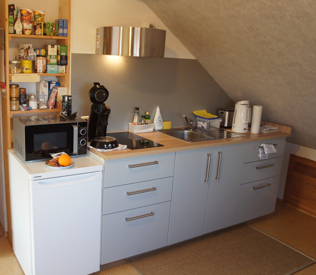 ウルム・ミシェルスベルク、広々としたアパート、約65平方メートル、1. 西ロジア付きの1階。ミヒェルスベルク大学病院とウルム大学の近く。駐車場あり。静かな場所。お茶とコーヒーのための給湯器。 フィルターコーヒー用のコーヒーメーカーがあります。 流し台、3*冷凍庫付き冷蔵庫、オーブン、電子レンジ、トースターを備えたキッチンがあります。コンロはありません。塩水地熱ポンプによる暖房、最大室温22度まで。
