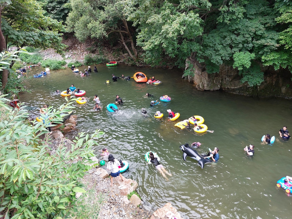 「ここは蔚山全舟区江東ビーチの目の前にある小さなカントリーハウスです。 この建物には100ピヨンの17面の庭があり、小さな庭園とさまざまな種類の木々で飾られた小さな庭園があります。 カントリーハウスですが、4人家族や8人まで泊まれる居心地の良い空間です。 多くの地域では、アパートではなく不便かもしれませんが、これはカントリーハウスの素晴らしい魅力の1つだと思います。 虫が入ってくるかもしれませんが、蝶、ハブ、ストレートコッパー、羊飼い主、野良猫と遊び、何百匹ものトンボが飛ぶのを見ることができます。 また、自分で植え付けられたレタスと種子の葉を摘むことでポークベリーパーティーを楽しむこともできます。 Zhengjiangの江洞ビーチでこの場所の美しい自然を感じてください。 違和感を感じていても特別な体験にしましょう」 ****芝生や庭を飾るのに一生懸命働く家なので、庭から虫が家に入ってきます****。