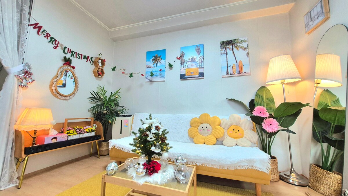 清潔に準備された家です〜 寝室2室、ベッド3台で6人、7人利用したい場合はトッパーと寝具をご用意しています。 階段を使う3階なので、荷物が多い場合は少し大変かもしれません〜 専用駐車場はありませんが、家の前の道路に白線駐車場がありますが、駐車スペースがない場合は、宿泊施設から1〜2分の距離に有料駐車場がありますので、必要に応じてご利用ください。 (場所や電話番号が必要な場合はチャットしてください〜^^) 10M以内にマートがあるので、必要なものを簡単に手に入れることができます。 また、徒歩5分圏内に伝統市場のオイルジャンギ(0.5日)があるので、スケジュールが合えば、伝統市場を体験することもできます。 徒歩10分のところに太和江川国立公園があり、のんびりと散歩や観光を楽しむことができるので、楽しい時間を過ごせると思います。 防疫に気を配っていますが、避けられない昆虫の発見は返金の原因にはなりません〜