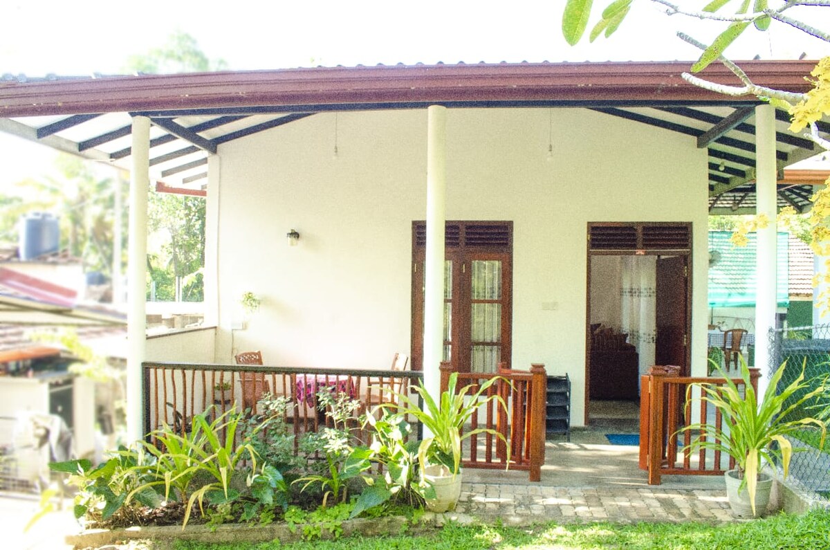 Private self contained 1 bedroom,en-suite bathroom cottage in the garden of our home,access to swimming pool,hammock and a private outside area. Must be dog lovers,we have 2 dogs. We are LGBTQIA+ friendly. The property is in a quiet local village,surrounded by paddy fields and peacocks. The wildlife watching is excellent. Very quiet in the evenings, see how the real Sri Lankans live. Kick back and relax in this calm,stylish space.