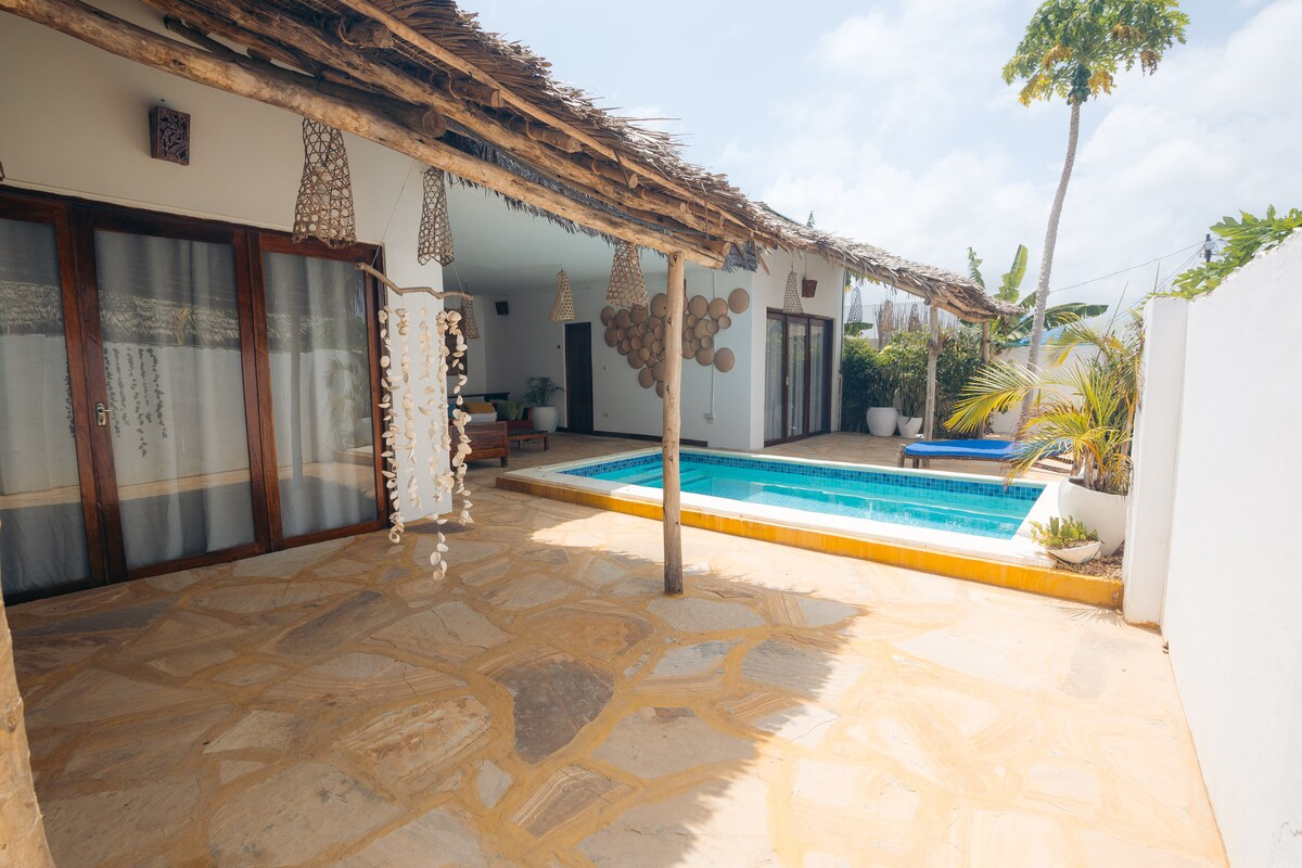Relax and unwind in our newly build stylish apartments. Enjoy the pool in front of your private apartment or take the 7-8 minutes walk to the beach nearby. We are located away from mass tourism, so if you value your privacy this would be the place. Ideal for young newly wed couples! We can arrange safari’s to the mainland and day trips on Zanzibar as well. Shops and supermarkets can be reached within 5 minutes by car or moped. Or we happily deliver your grocery’s to your doorstep.