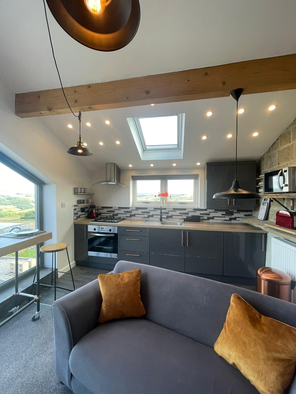 Top O'Thillは、床から天井までの大きな窓から渓谷の最高の景色を眺めることができます。この広々としたモダンなアパートからは、専用玄関のすぐ外からアクセスできるカルダーデール・ウェイが見えます。豪華なサウナを備えた明るいパティオエリアがあります。素晴らしいアウトドアがお好きなら、海抜1000 mのTop O'Thillで、世界の頂点にいるような気分を味わってください。もっとカロリーを燃やしたい場合は、設備の整ったジムスペースがあります。