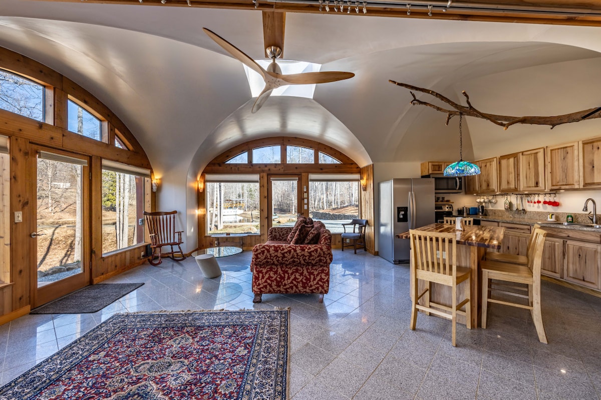 この宿泊施設は、4ベッドルーム、2バスルーム、銅製シンクを備えた設備の整ったキッチン、ユニークな大きなオープンリビングルームを誇り、すべてが天然光が差し込む透明なドームが上にある4フィートの高さの塔を備えた地下ジオデシックドーム内にあります。 このユニークなバケーションレンタルは、ファイエットビルエリアを探索したいご家族やお友達のための楽しいホームベースとして設計されています。 鳥、ワシ、シカ、その他の野生動物を眺めながらシャイアでくつろいでいるときでなければ、多くの特別な地元のアトラクションを探索しに行きましょう!
