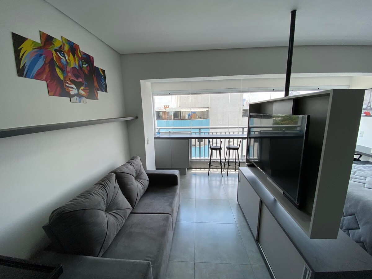 快適に過ごせるように、すべてが揃った快適なスタジオです! スタジオの設備: •クイーンベッドと広々としたソファ •エアコンとヒーター •タオルとリネン •キッチン用品 建物には20階にインフィニティプール、ジム、サウナ、ガレージ、ミニマーケットもあります ここには、サンパウロの素晴らしい景色を眺めながら仕事やリラックスに必要なものがすべて揃っています。