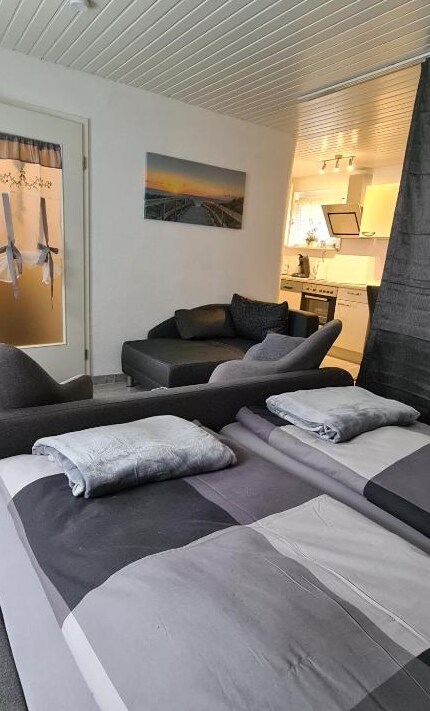 1階にある非常に静かなアパートで、独自の入り口があり、居心地の良い北欧スタイルで完全な宿泊施設を提供しています。 リビングエリアと高品質のシングルベッド2台が備わっており、あらゆる年齢層に快適な滞在を提供しています。 南向きのテラスと駐車場は玄関の目の前にあり、すべての観光スポットに簡単にアクセスできます。 島を訪れたり、堤防を散歩したり、サイクリング、街のツアーを訪れたり、NLを訪れたりする場合でも、イーストフリジアの静けさの中心部に住んでいます。