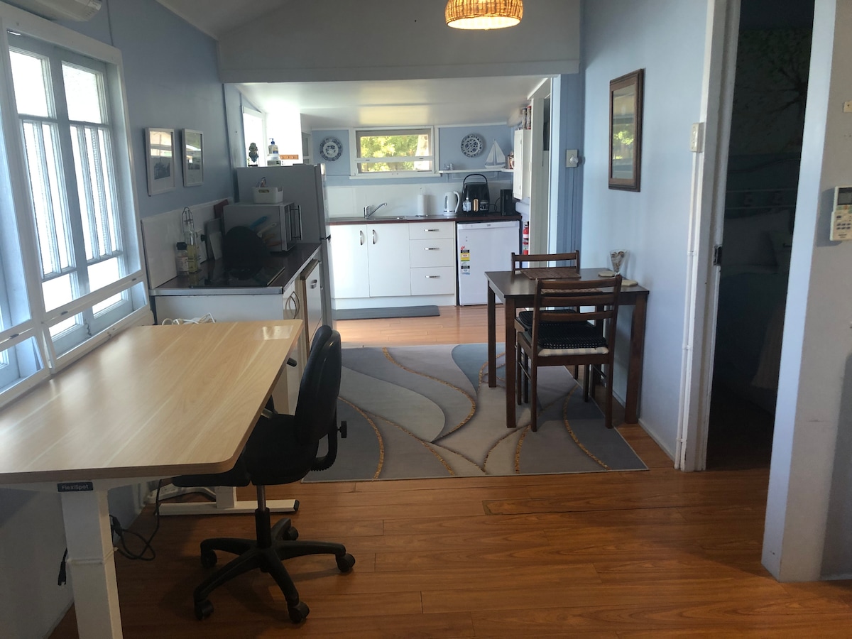 快適さを重視してモダン化された1930年代の1ベッドルームコテージ! ビーチ、桟橋、カフェ、パブ、スーパーまで徒歩圏内。 エアコン、冷蔵庫/冷凍庫、電子レンジ、エアフライヤー、食器洗い機、ポッドコーヒーマシン、洗濯機と物干しロープ、テレビ2台(寝室42インチ、ラウンジ75インチ)、専用バーベキューエリアと庭。 NBN WiFi、Netflix。仕事:電動の座れる/立てるデスク!プール(共用)。ペット歓迎(15 kg未満)安全な庭(予約に追加)。 ご要望に応じて自転車2台をご利用いただけます。 注:私たちは2匹の小さな犬と一緒にメインハウスに住んでいます。