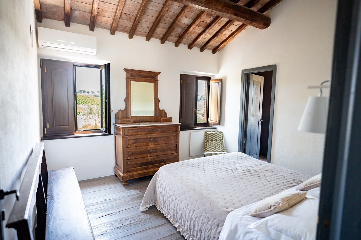 ファームハウス・サンタ・マルゲリータは、モンテプルチャーノを見下すトスカーナとウンブリアの国境の丘の上にある、18世紀に建てられた素晴らしく修復された家です。このファームハウスは最近改装され、ゲストに4つのバケーションアパートメントを提供しています。 お部屋はとても広くて快適です。 家具は豪華で、木製家具、錬鉄製ベッド、エレガントなランプが含まれています。 キッチンは設備が整っているので、お料理のスキルを十分に発揮できます。