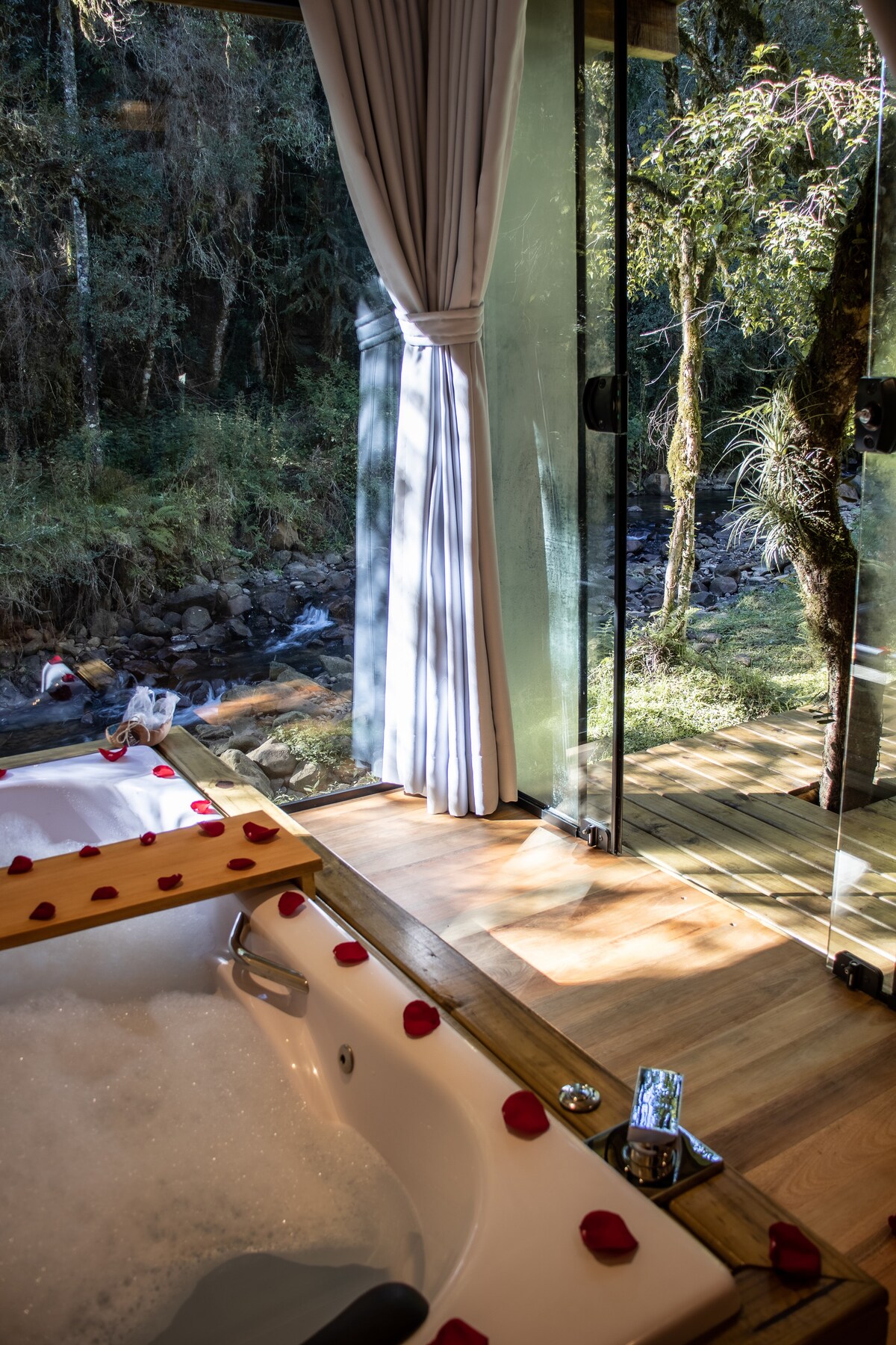 リラックスしたロマンチックなひとときにぴったりの素朴でシックなスタイルのシャレーにご宿泊いただけます。私たちのスペースはすべて、あなたが安らぎと居心地の良さを持ち、自然の美しさを楽しむように設計されています。日中は、自然保護区(RPPN)内のツアーに参加したり、滝で水浴びをしたり、秘密の庭を訪れたり、夜はデッキでたき火を楽しんだり、美しいお風呂につかったりしてください。皆様をお迎えし、素晴らしい滞在を提供できることを嬉しく思います!