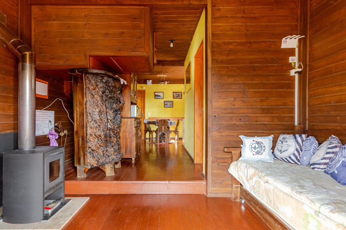Chalé para quem procura uma experiência aconchegante, tranquila e centralizada (bem localizada). Completo com lareira interna de fácil manuseio, ar condicionado quente e frio, smart TV, cozinha completa, cama de casal extremamente confortável e muitos cobertores disponíveis. Está localizado à 3 minutos do centro da cidade, onde ficam todos os mercados, padarias, restaurantes e farmácias. Também tem fácil acesso a todos os pontos turísticos.