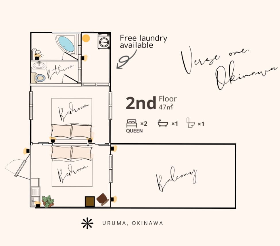 旅館業法取得済み物件 [ 第 H29-140 号] ブルックリンスタイルのクールなリビング&ダイニングでカフェなような空間での滞在をお楽しみいただける新築2階建のAirbnbです。 ベッドルームもたっぷり3部屋あり、トイレも各階にございますのでゆっくりとリラックスできます。 また、物件周辺には地元の人々の定番のタコライスのお店「キングタコス安慶名店」やバナナボートなどのマリンスポーツが楽しめる「宇堅ビーチ」、また日用品や飲み物などが幅広く揃う薬局「ドラッグストアモリ」などローカル&便利なスポットが多くございます。 駐車場は敷地内に普通車1台、100m先の第2駐車場へもう1台ございます。 ピカピカの新築ルームで、あなたのグループ旅がさらに楽しくなれば嬉しいです! 宿泊費から、2連泊で15%オフ、3連泊で20%オフの連泊割りもあります。 (ご予約後にお知らせくださいませ^^) わからないことがあれば、お気軽にホストへメッセージを送ってください^^ ※現在施設にはガスコンロではなくIHクッキングヒーターがございます。