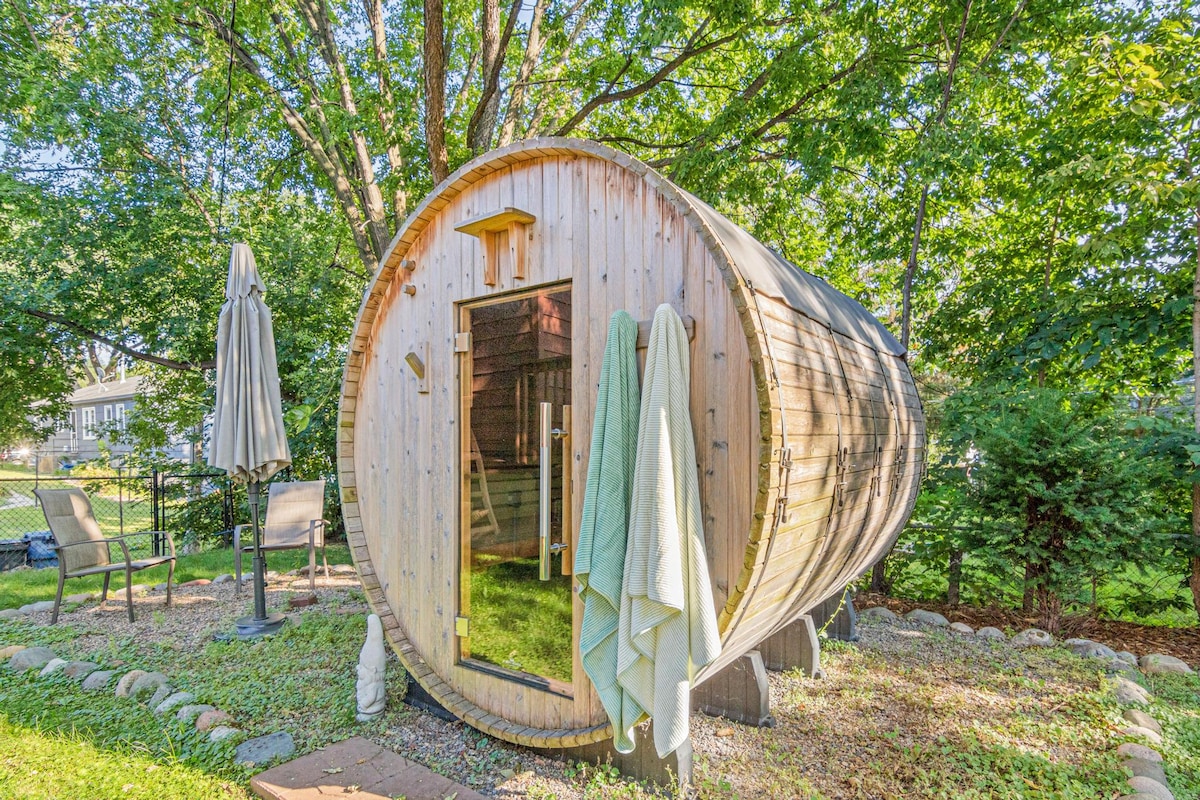 記念日、誕生日、または単に元気を取り戻すための休暇に最適です。ミネソタの人々が冬を楽しむ理由を、木々を眺めながら104 *ホットタブまたは190 *サウナでリラックスしながらご覧ください。キングサイズのベッド、ソファベッド、豪華なローブ、スリッパ、そして数多くのアメニティが含まれています!このユニットは、より大きな家(レンタル可能)に隣接しています。ただし、この小さなスペースを借りるか、家全体を借りるかのいずれかで、一度に1つのグループのみが宿泊施設に滞在します。