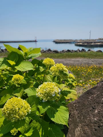 - 宿泊先のユニークな点:대문을 나서면 바로 보이는 항구마을