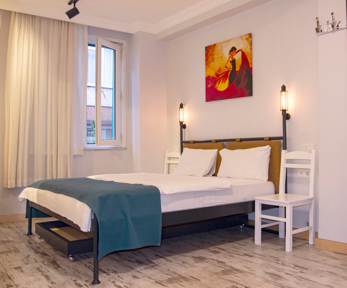 ベシクタシュの中心部にある快適で実用的なスタンダードホテルの客室です。 立地、清潔さ、利便性を重視した客室には、短期滞在にも長期滞在にも必要なアメニティ・設備がすべて揃っています。 公共交通機関、カフェ、レストラン、フェリーへのアクセスも便利で、イスタンブールを探索するのに理想的な拠点です。 24時間対応のフロントデスクサービスにより、スムーズで安全な滞在をお約束します。