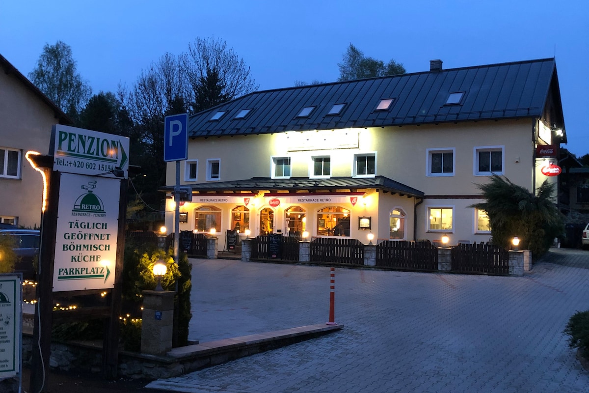 この静かな滞在中に、あなたは完全にリラックスできます。静かで快適な環境で、徒歩や自転車で近くの周辺や遠くの周辺を探索できます。例えば、美しい町ティサとティスケ・スカルは、すべての観光客に非常に人気があります。近くには展望台スニェジュニークがあります。車でわずか15分。ヘルジョンスコとプラフチツカ・ブラーナは40分。ウースチー・ナド・ラベムとデチーンは約10キロの距離にあります。