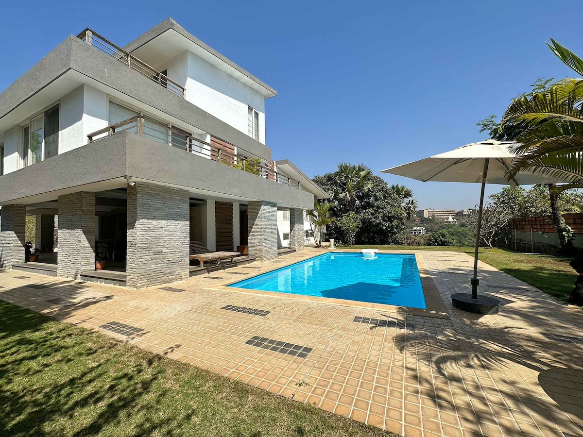 ムンバイ周辺のペットOKのヴィラをお探しですか?ゴライにある3.5ベッドルームのプールヴィラ、Seaview Soireeにお越しください。パーティー気分に浸るのに最適な場所です。 ムンバイ近郊にあるこの現代的なヴィラは、専用プールと2階建ての庭園の芝生を誇り、家族でのパーティーに最適です。 0.25エーカーにわたって広がるこの絶妙な物件は、4階建てで3.5ベッドルームと専用プールを備えています。