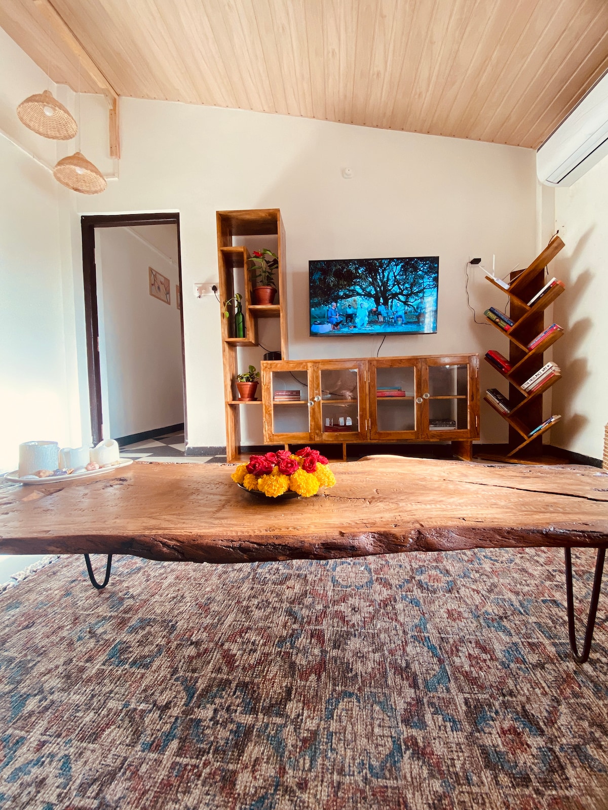 「風の要素」にインスパイアされたヴァーユは、タルポナ川沿いの静かなリバーフロントの隠れ家で、プールもあります。この2ベッドルームのアパートは、モダンな快適さと1970年代のゴアの魅力を融合しています。風通しの良いリビングルームでくつろぎ、家全体から川の景色を楽しみ、ココナッツの木々に囲まれたプールでリラックスしましょう。自炊用の設備の整ったキッチンを備えたこの平和な隠れ家は、ゴアの時代を超越した美しさ、静けさ、自然とのつながりを体験するのに最適な場所です。