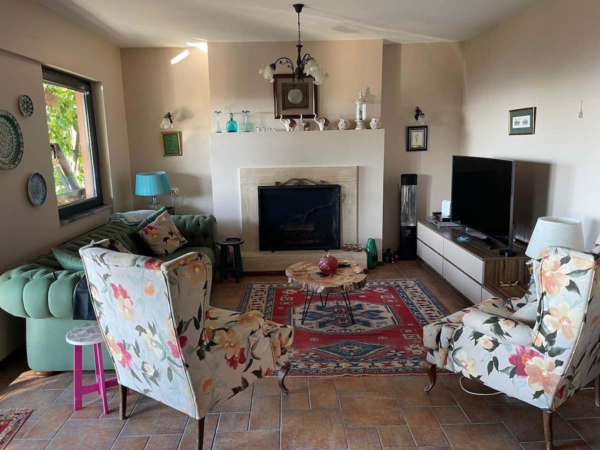 サパンジャの壮大な自然の中で、あらゆる色合いの緑を提供し、70m2の2 +1のコンセプトで広々としたスタイリッシュなデザインであなたを魅了するキウィガーデンハウスで、家族や友人と楽しい休暇をお過ごしください。暖炉ストーブ、屋外ジャグジー、プールは、楽しい休暇のためにあなたのサービスにあります。