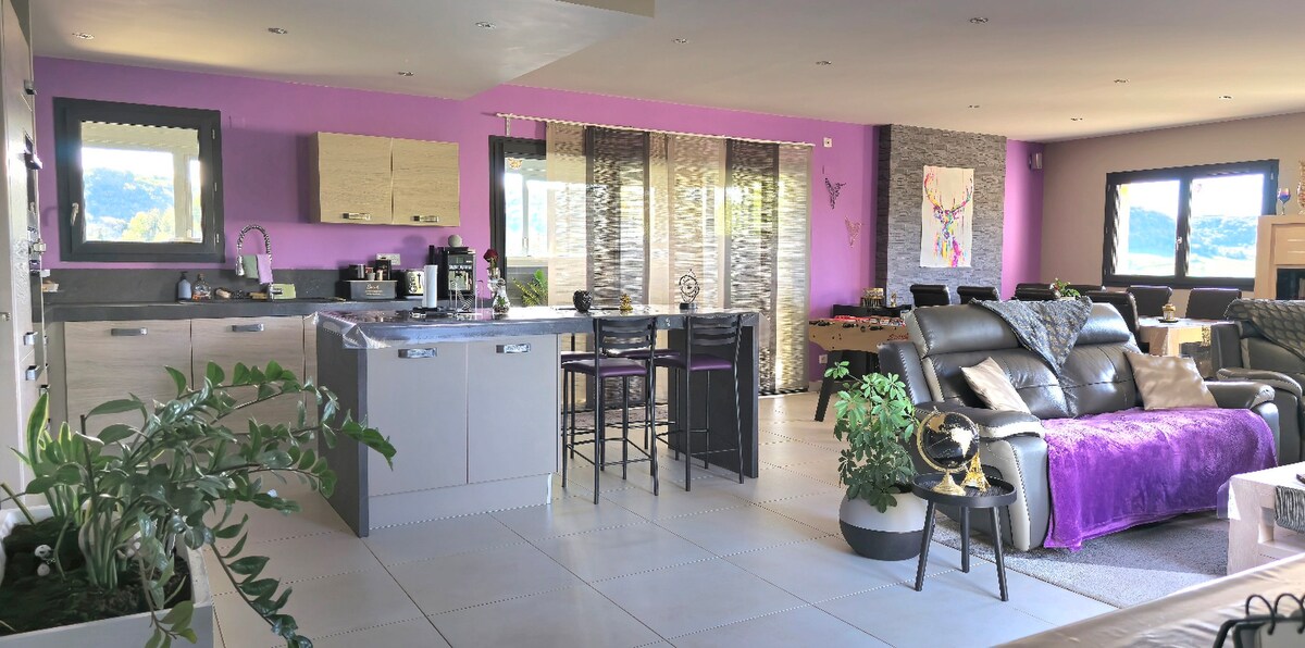 とても快適な環境にあるこの家でリラックスしてください。 35/37度に温められた大きなスパで泳ぐことができ、日常生活を忘れることができます。 設備に魅了されることでしょう: - 寝室:2メートルの形状記憶フォームとスプリングのベッド、親密な照明。 - バスルーム:シャワー、洗面台、ドレッシングテーブル、トイレ(別のトイレが家の中にあります)。 - 設備の整ったキッチン - リビングルーム:ピアノ、テーブルフット、ボードゲーム、テレビ。 Alexa接続スピーカー。