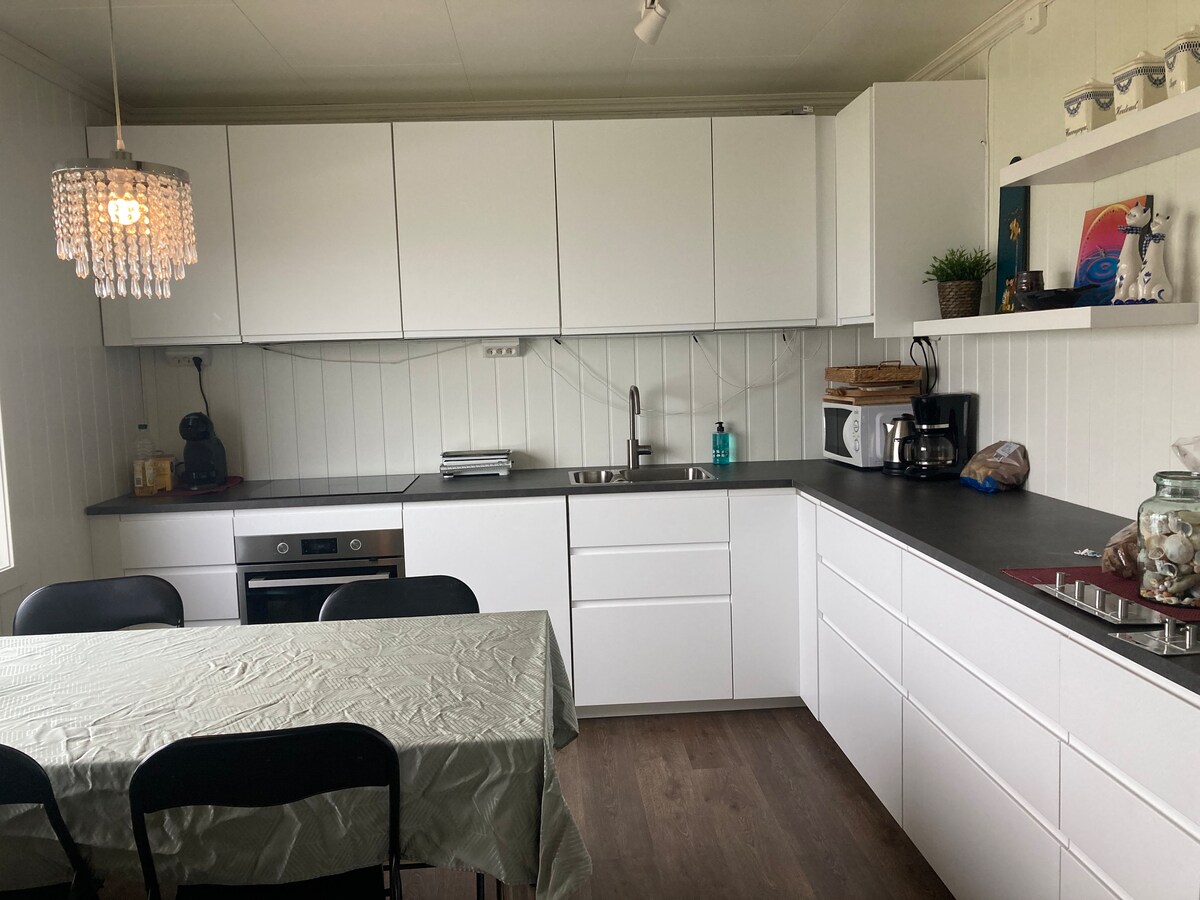 Soverom 1: Ny Seng (120cm) Stue/ kjøkken: Ny sovesofa. En ny gjesteseng (74cm), Alle sengeplasser har dyne og pute,med dynetrekk og putevar og 1 stort håndkle. Det kan på forespørsel settes inn reiseseng til barn. Spisebord med stoler. Kjøkkenkork med komfyr og stekovn og kjøleskap. Vannkoker Nytt bad Håndsåpe, Zalo og vaskeutstyr. Tørkestativ. Soverom 2: Køyeseng (90cm) med nye madrasser