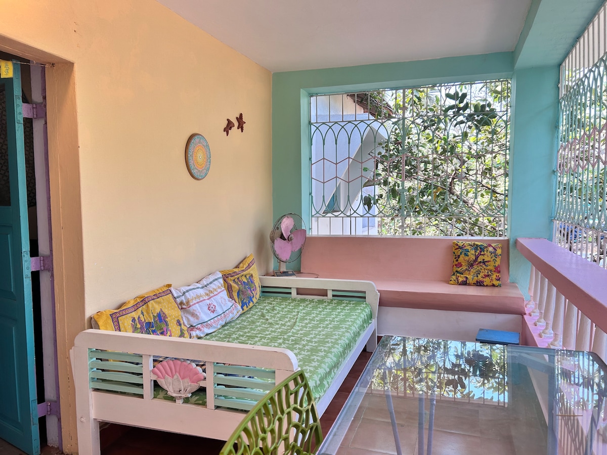 ウッドビーチから5分のこちらのおしゃれなお部屋で、のんびりとおくつろぎください。 快適な家には、平和な休暇に必要なものがすべて揃っています。広々としたホールと寝室、設備の整ったキッチン、清潔なバスルームがあり、2つのバルコニーがあります。 Wi-Fi、電源バックアップ、シングルマットレスをご用意しております。 シオリムの中心部にあるシンプルな宿泊施設で、川から2分、ビーチから5分です。 この静かでありながら中心部にあるこの場所で、プライベートなゴアの休暇をお楽しみください。 ヴァガトールとモルジムに近いです。 長期滞在予約を受け付けています。