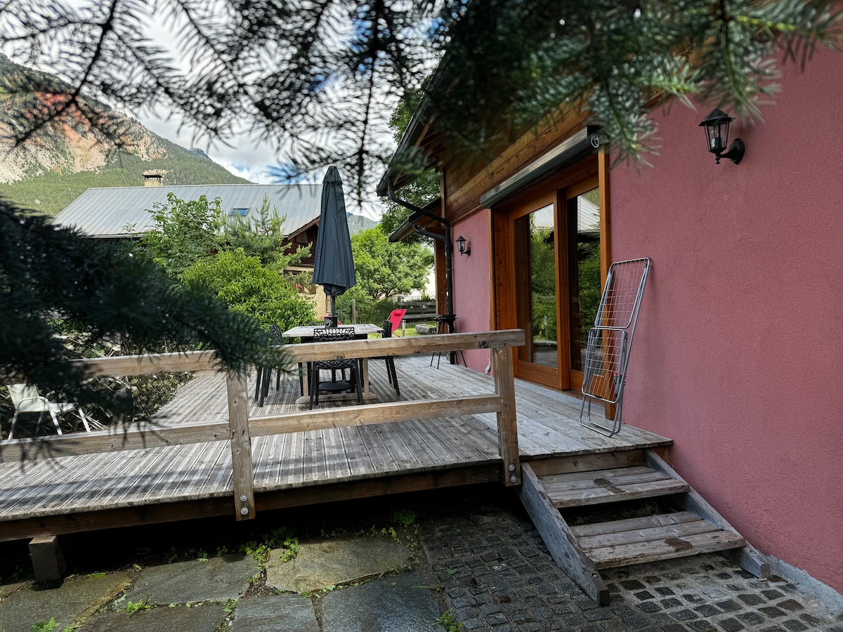 クラレー渓谷に位置するこの温かいシャレーで、ご家族やご友人との時間をお楽しみください。 2階建てのメインパーツ(約100平方メートル、7~8名用ベッド)と独立しているが同時に接続可能なF1(20平方メートル、2~3名用ベッド)を備えたモジュラーシャレー。使用するパーツに応じて料金を調整することができます。 南向きで、非常に明るい、大きなリビング/ダイニングルーム インサート、薪ストーブを備えたキッチン。 ユネスコの世界遺産であるブリアンソンから10分の広い木々の生い茂る庭。