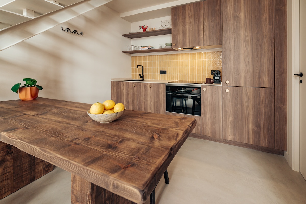 魅力的なパティオから直接アクセスできる明るいデュプレックス。最大3名様までご利用いただけます。ソファ、ダブルベッド、自然光を取り入れる大きな窓を備えたリビングエリアがあります。上の階には、一人に最適なシングルサイズのソファベッドがあります。キッチンには、ガスコンロ、電子レンジ、冷蔵庫、ネスプレッソコーヒーメーカーが備わっています。バスルームには、ヘアドライヤー、タオル、衛生用品が備わっています。エアコンと高速インターネット。海と芸術の街の近く。